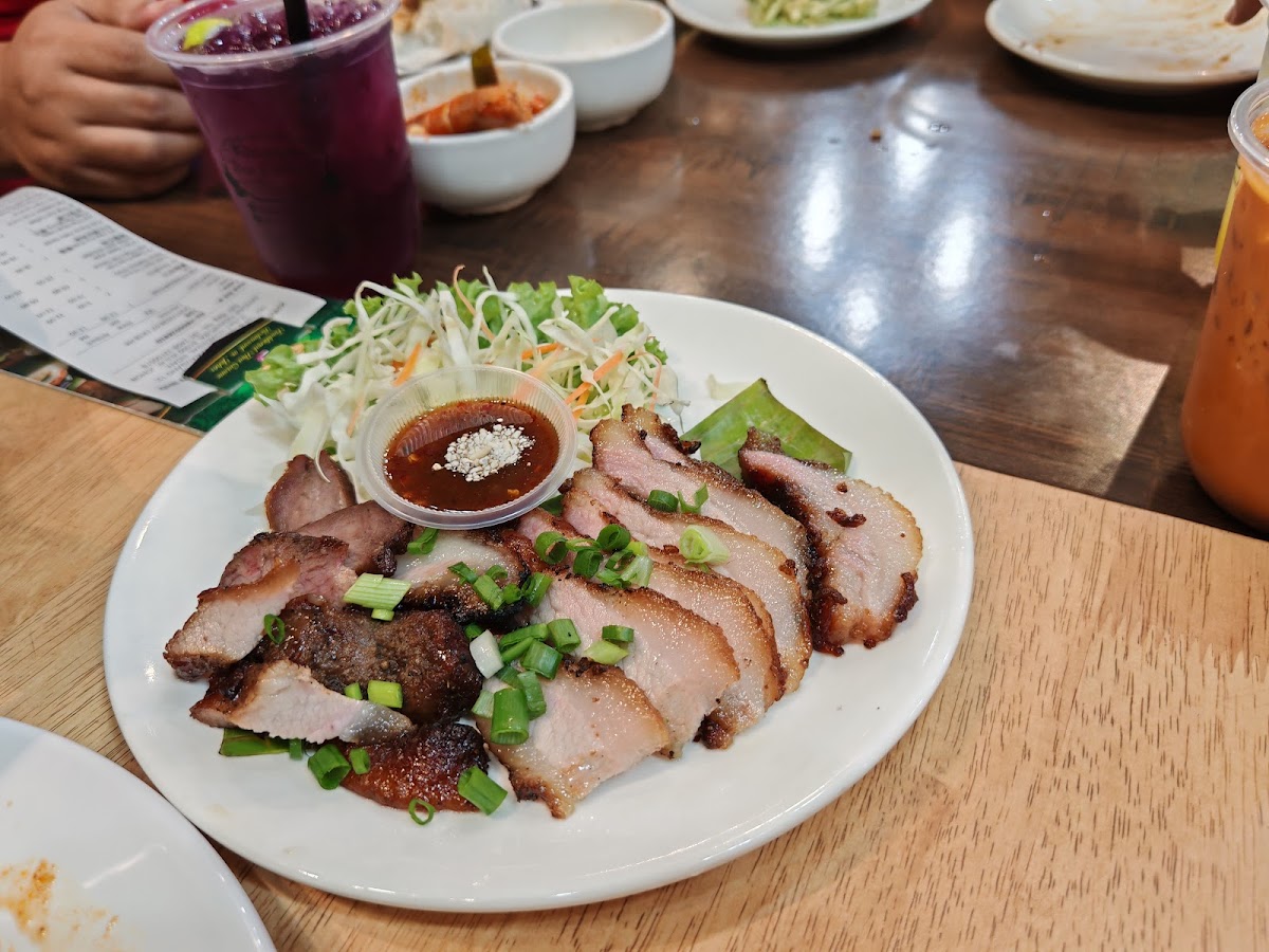 Visitors to Khunya can expect a menu featuring Thai staples like seafood tomyam, deep-fried kangkung, pineapple fried rice, and various meat dishes such as moo ping and spicy basil pork. Several patrons note the food's authentic taste — from the tender, well-marinated meats to the balanced, fragrant lemongrass drinks accompanying meals. Portions tend to lean generous, especially for the meat dishes, which suits those looking for a substantial, satisfying meal.